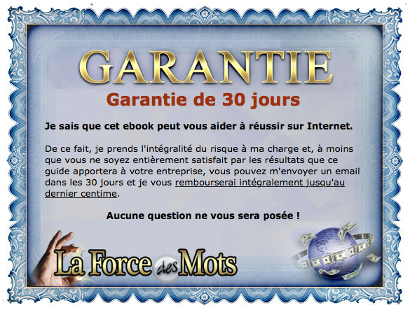 Vous ne me croyez pas ? Alors, voyons si cette garantie pourra vous rassurer :